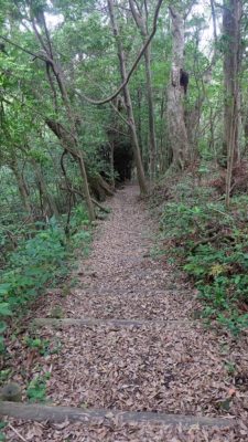 私たち夫婦の場合はリゾート大島に宿泊していたので車はキャンプ場に停めておいて歩いて森を抜けて浜まで出る事にしました。この時点では、森を抜けたら海に出るということしか知りませんでした。