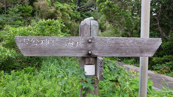 橋を越えた丁字路のところに看板を発見、少々読みづらくなってますが「雷公神社・海岸」と書いてありますね。では早速行ってみましょう。