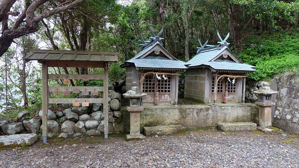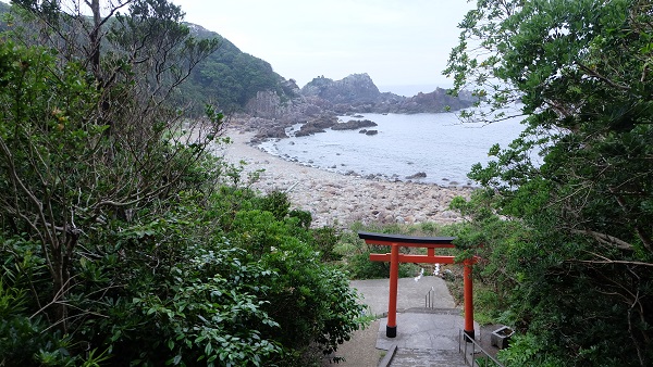 串本町の潮岬からくしもと大橋を渡った先が紀伊大島ですが、雷公神社は島の東側に位置しています。一の鳥居までは車で行けます。近くにある日米修交記念館の駐車場(無料)を利用させていただくのもいいですね。