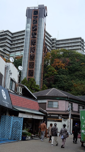 歩いていると大きなエレベーターと建物が見えてきます。