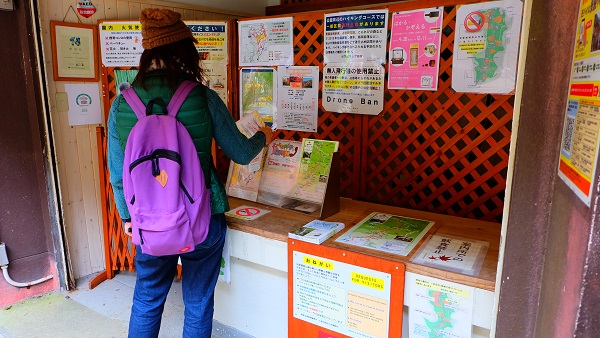 滝横にある建物では地図やパンフレットなどが置かれていましたので活用してみてください。