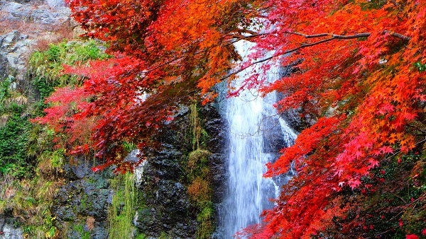 大阪で大人気の紅葉スポット「箕面公園」その中にある箕面大滝は夏とはまた違った風情を与えてくれます。