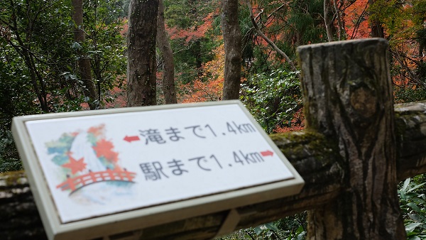 箕面大滝まではおよそ2.8km(徒歩で約1時間)と、紅葉を楽しみながら散策するには最適な距離です。