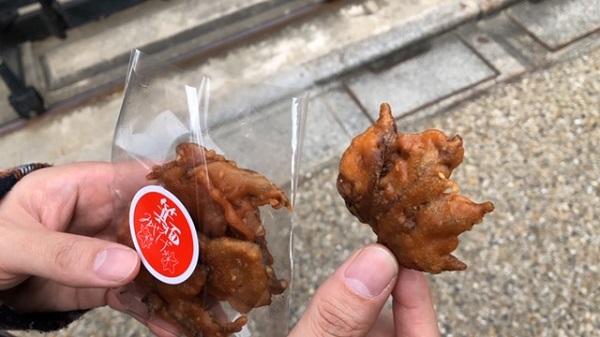 大阪の箕面公園に紅葉を楽しみに行けば必ずと言っていいほど目にする事でしょう。