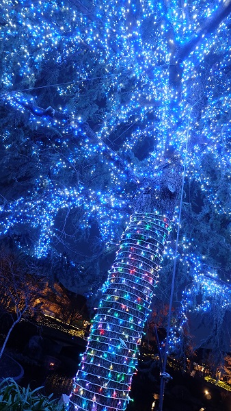 細やかに電飾が施されていて、側で観るとその大きさと美しさに圧倒されてしまいます。