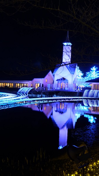 なばなの里では全国的にも珍しい水上イルミネーションを観る事ができます。