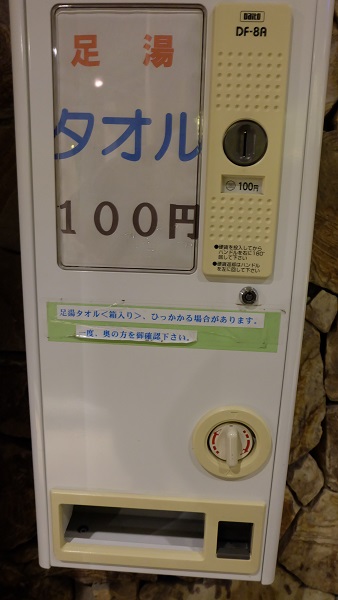 足湯施設内にはタオルの販売機が設置されているので、タオルを100円で購入する事もできます。