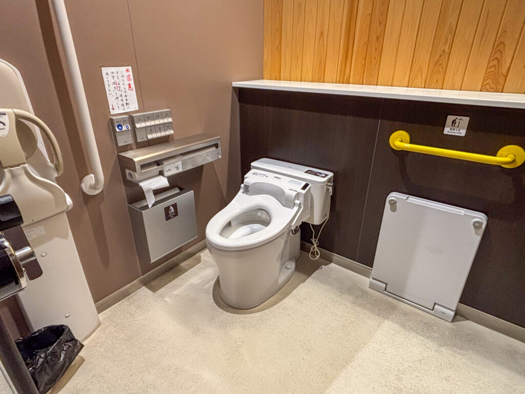 画像の通り、トイレはとてもキレイです。着替え台や子供トイレも設置されています。